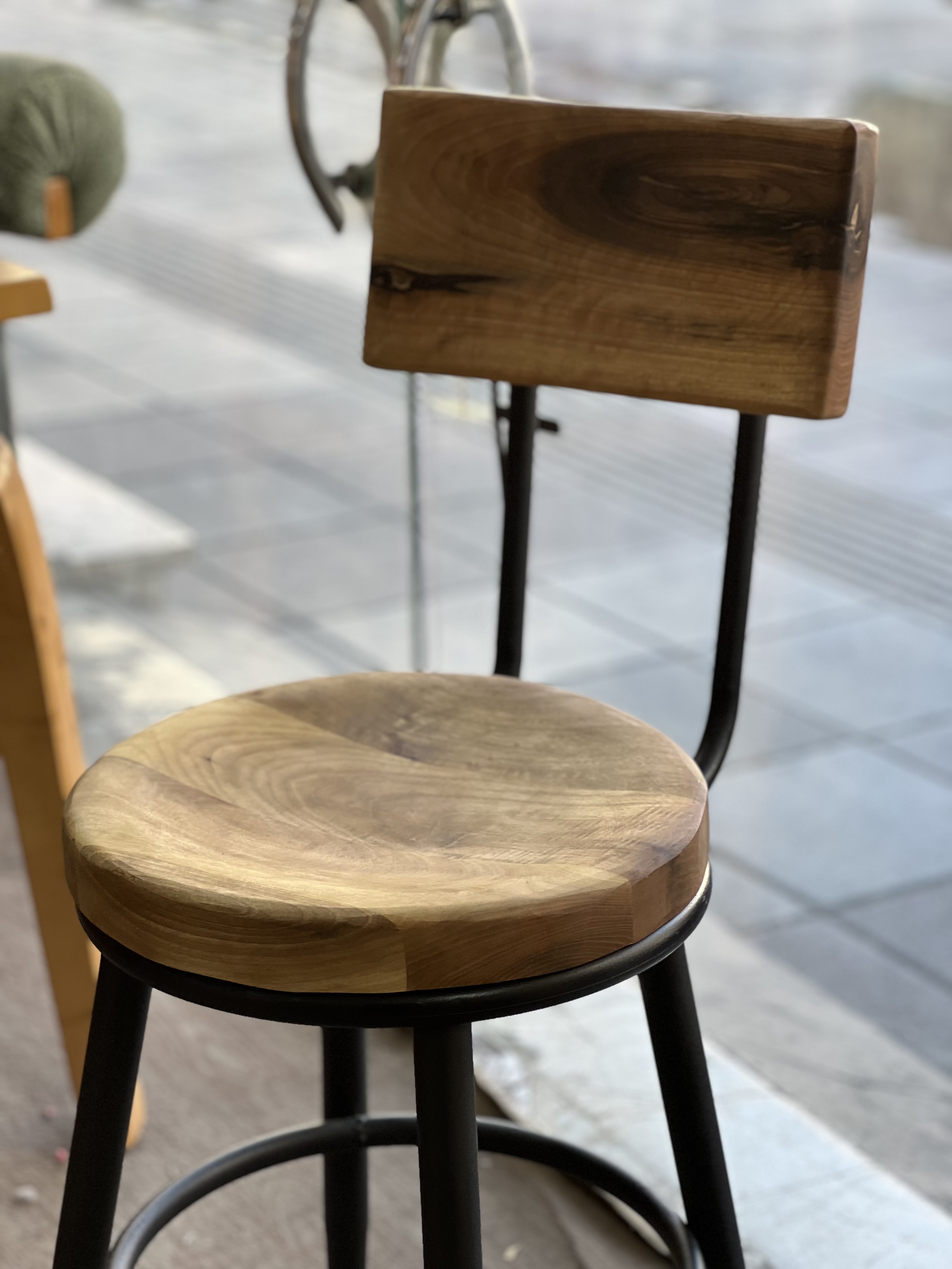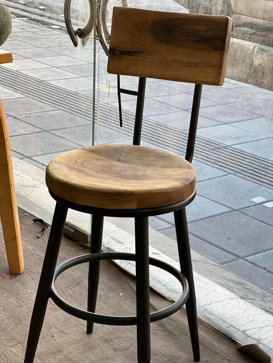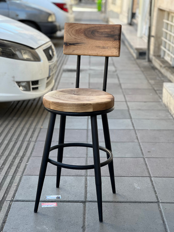صندلی اوپن جمع و جور و مینیمال ترکیب چوب گردو و فلز با رنگ فلز استاتیک مشکی