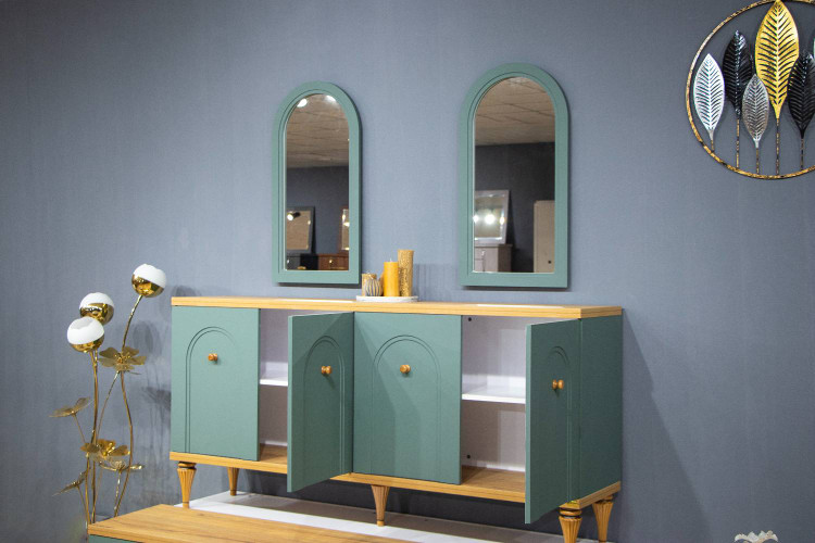 ماتیلدا برای آنهاییست که دوست دارند خانهشان رنگ داشته باشد، اما همچنان شیک و خاص باقی بماند. رنگ آبی-سبز خاص این مدل، حس آرامش و طراوت دریا را به فضا میآورد. طراحی مدرن و نیمهکلاسیک آن با فرم خاص آینهها، هویت متفاوتی به دکوراسیون میبخشد. این ست با ترکیب چوب و رنگ، فضایی گرم و دوستانه ایجاد میکند که نه تنها چشمنواز است، بلکه کاملاً کاربردی نیز هست. ماتیلدا انتخابی جسورانه برای کسانیست که به دنبال چیزی فراتر از معمول هستند؛ برای خانههایی که دوست دارند متفاوت دیده شوند.